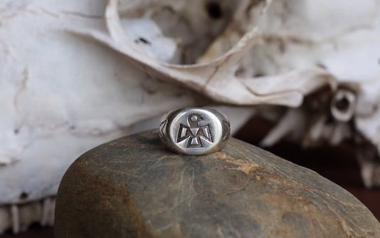Striking vintage Thunderbird signet ring.